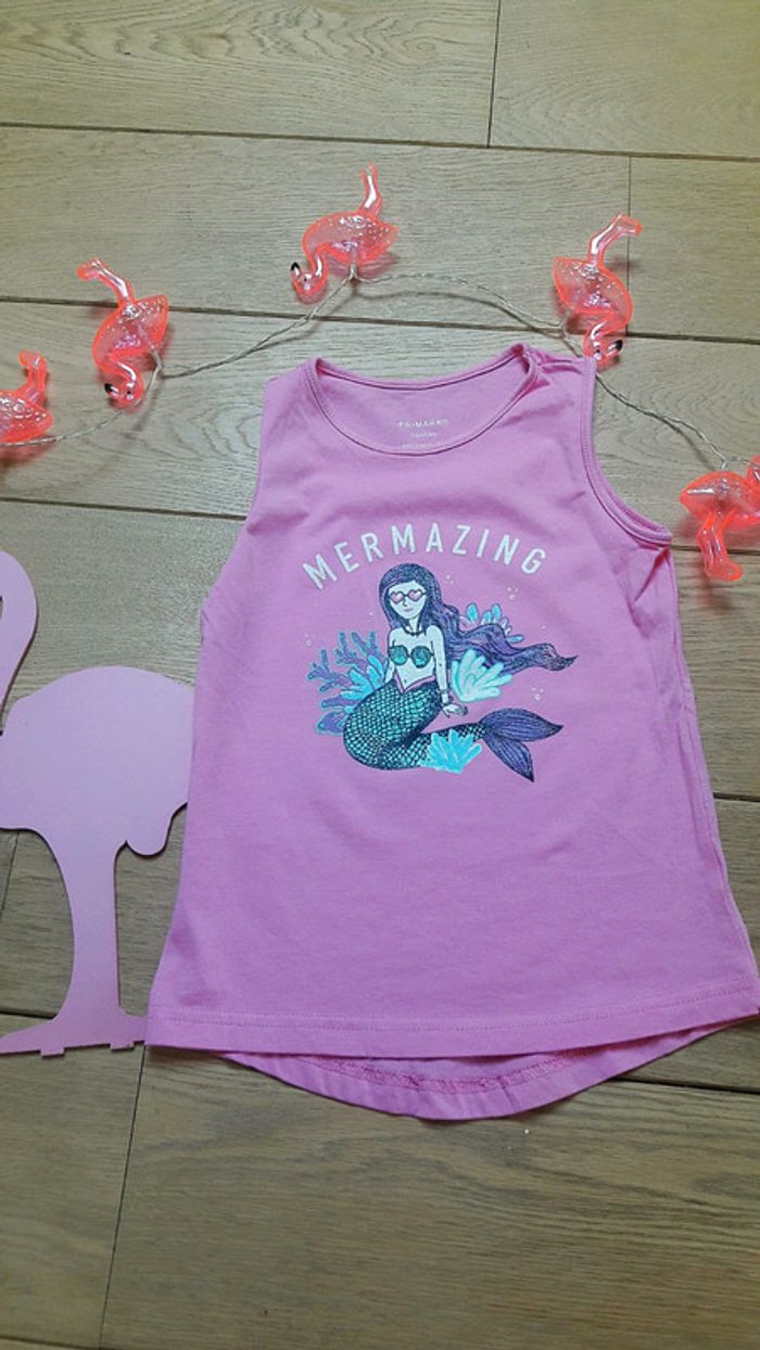 Débardeur motif sirène. Taille indiquée 5-6 ans. #fille5anscanellemauve #fille6anscanellemauve