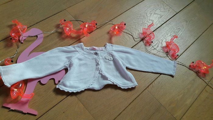 Beau boléro longues manches. Taille indiquée 12 mois. #fille9moiscanellemauve #fille1ancanellemauve