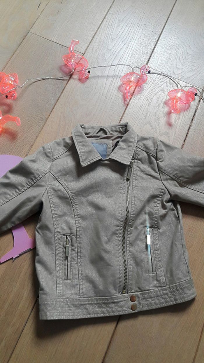 Très beau perfecto beige avec des reflets dorés. Très beau porté. Idéal pour la mi-saison saison. L étiquette a été coupé mais selon moi la matière est de la croûte de porc rapport au prix d achat. Taille indiquée 104. #fille5anscanellemauve