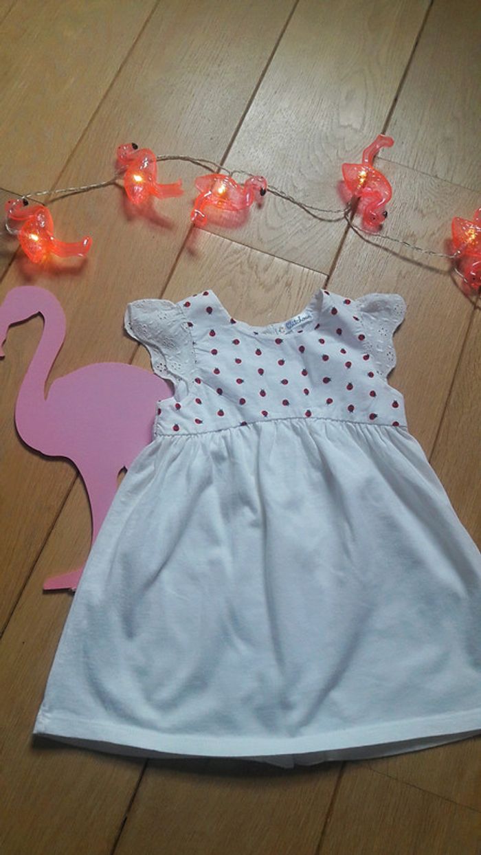 Belle robe impression coccinelles. Dentelles aux épaules. Légère idéale pour l été. Taille indiquée 9 mois. #fille6moiscanellemauve #fille9moiscanellemauve