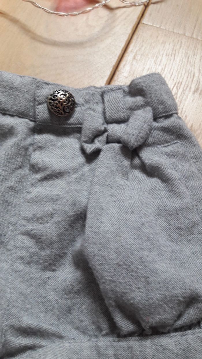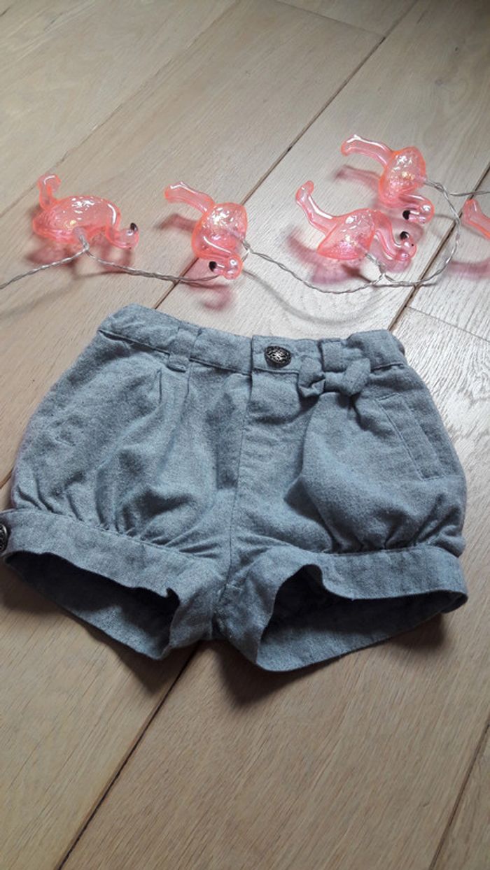 Short gris chiné. Taille ajustable . #fille9moiscanellemauve #fille1ancanellemauve