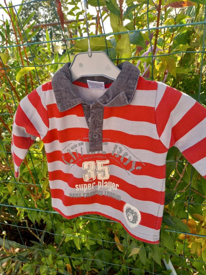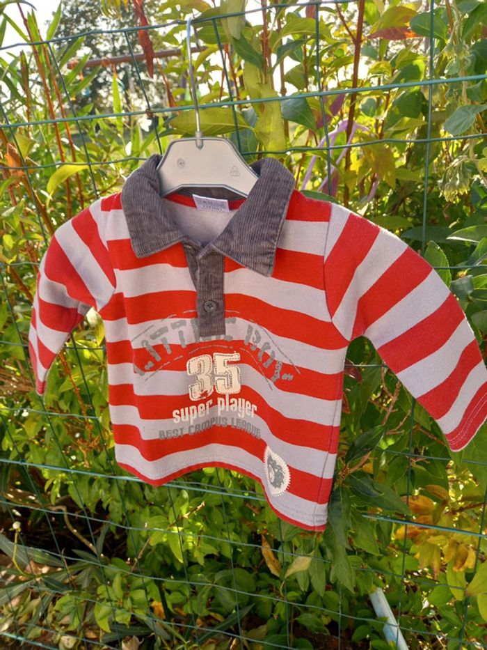 Polaire à l'intérieur Col avec boutons en bon état Rayures gris et rouge 1 an