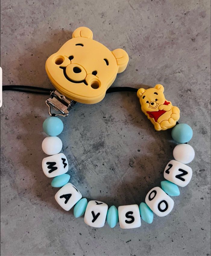 1 attache tétine 10€ Attache tétine personnalisé au crochet ,en silicone ou en bois au souhait de l’acheteur . Personnalisable au choix de l’acheteur que ce soit la couleur comme le prénom ou le thème . Le fil est doublé pour plus de sécurité tout le long de l’attache tétine. N’hésitez pas à me demander et regarder mon dressing. Une photo vous sera envoyée avant l’expédition pour vous ayez un aperçu du rendu. Tous les produits sont réalisés avec du materiel spécial conçu aux bébés , enfants.
