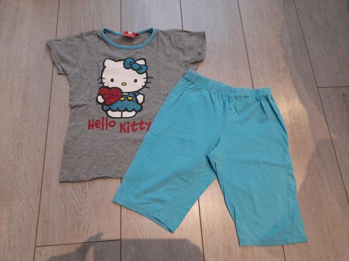 Pyjashort hello kitty 122/128 en bonne état se decoue légèrement à l entre jambe et une tache de peinture aux fesses