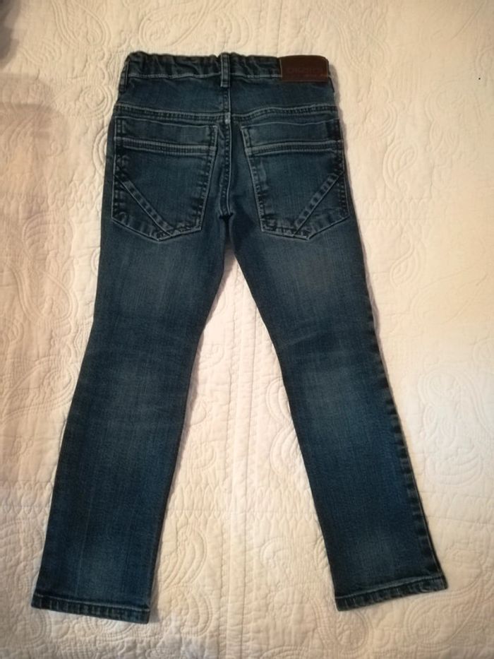 Jean slim, marque Okaïdi 6 ans, à noter patch rond sur le genou. Taille 6 ans. En bon état. Propres. Pas de tâches.