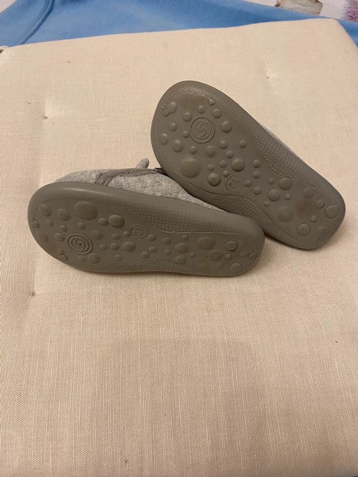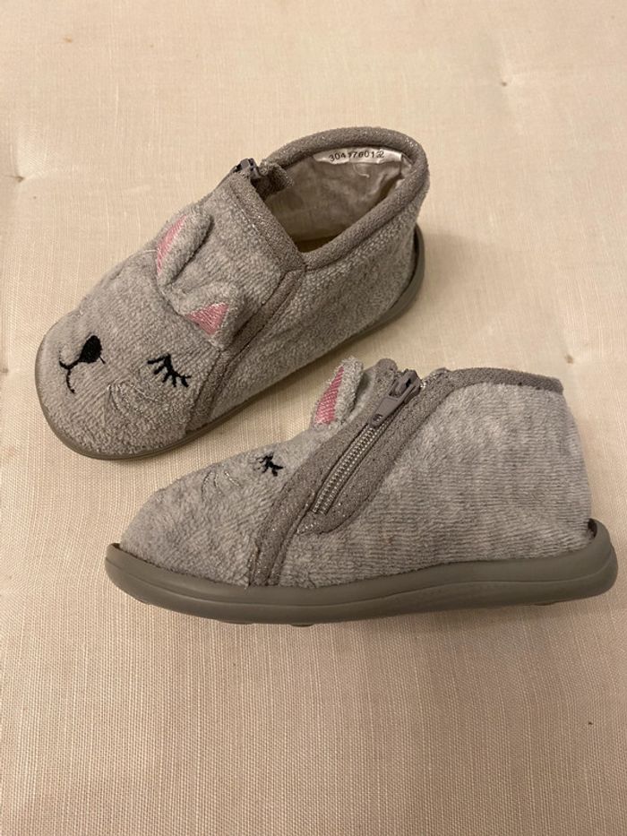 Vend chaussons pour enfants Marque Gemo Taille 21 Couleur grise. Fermeture éclair sur le côté. Très bon état