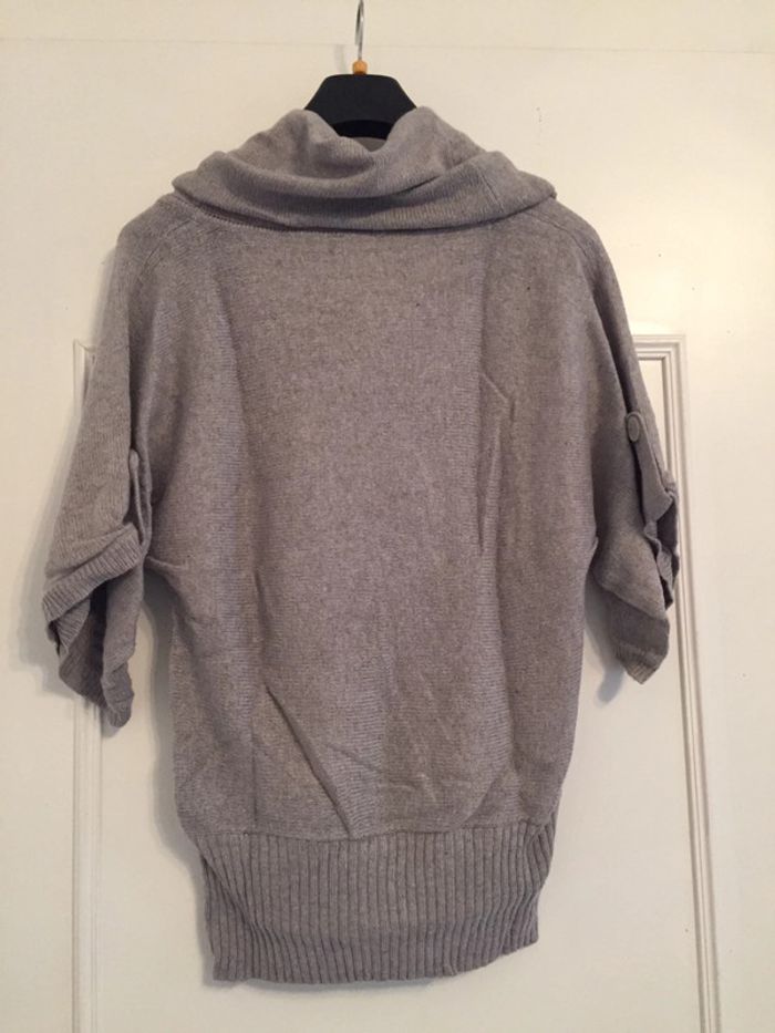 Vend pull long, à col roulé très large, manches 3/4. Couleur Gris clair. Également disponible en gris foncé. Marque Pimkie Taille S Très bon état