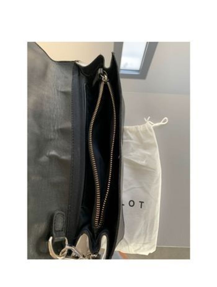 Pochette Claudie Pierlot En cuir de veau 4 compartiments intérieurs dont 1 poche avec fermeture 1 compartiment avec fermeture sur le devant Très bon état général , le cuir est un peu abîmé Sur la fermeture voir photo