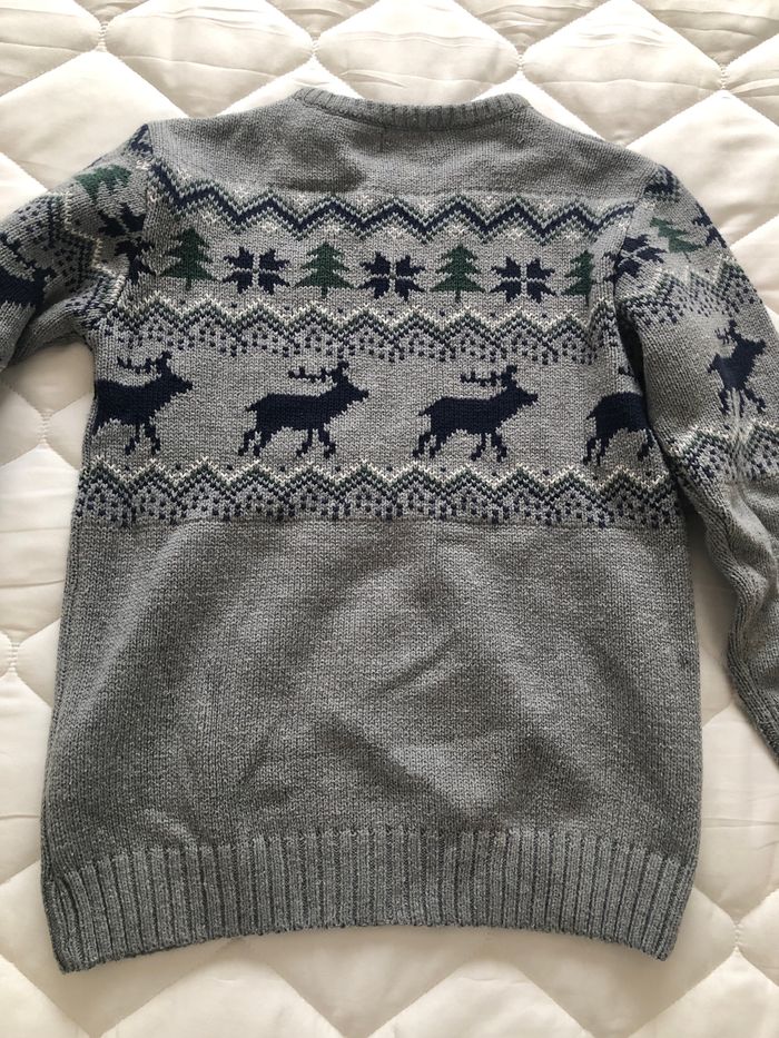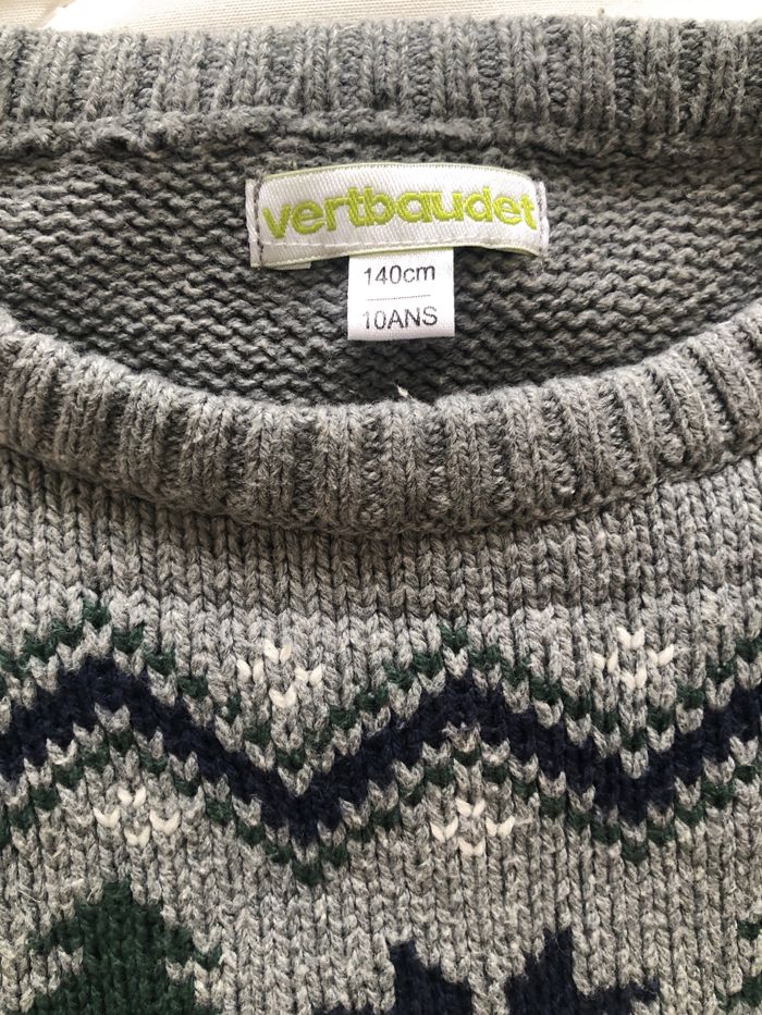 Pull sweat gris vertbaudet cerf sapin hiver Taille 140cm 10 ans