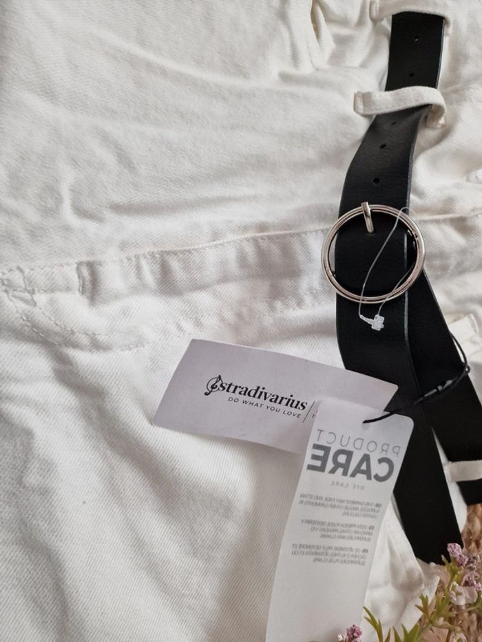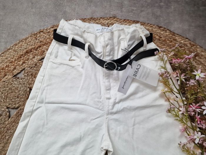 Jean taille haute avec ceinture noir STRADIVARIUS Neuf avec étiquette 🏷 30€ Couleur crème Pas de photo portée Fermeture zip
