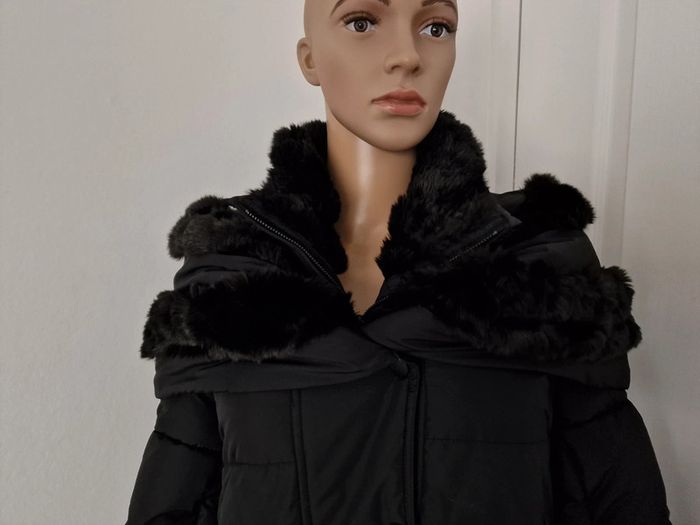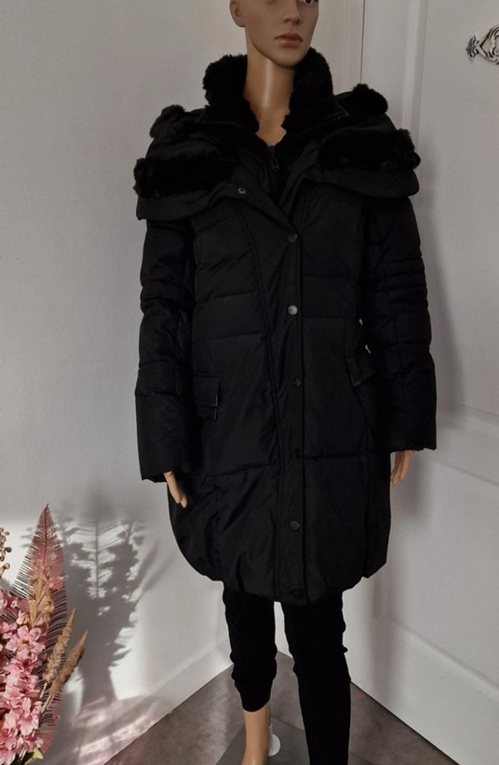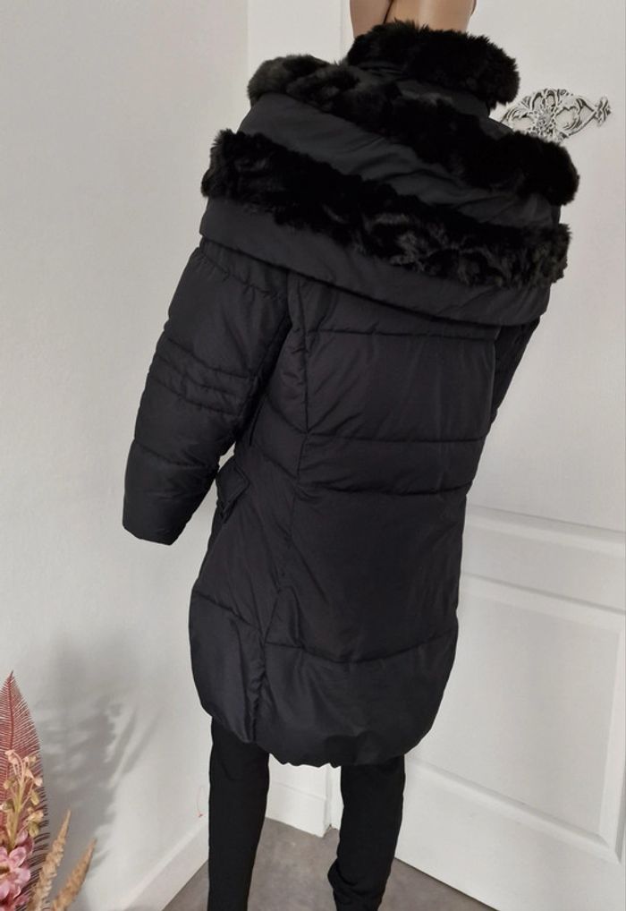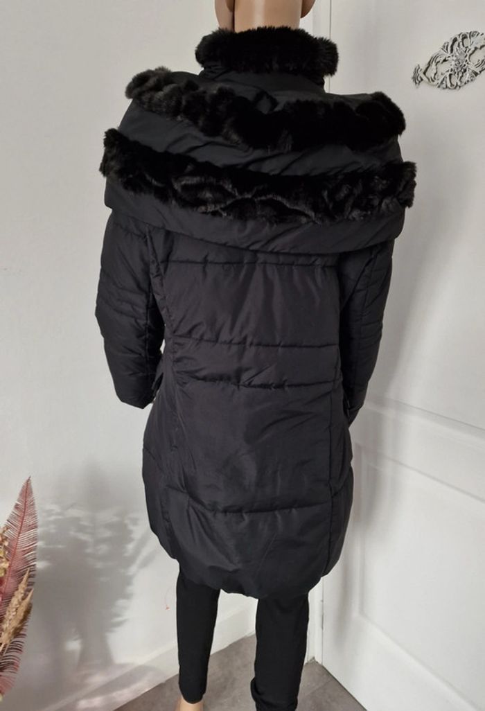 Manteau noir femme, fausse fourrure au col BRÉAL Super état , bien chaud, fermeture zip et pressions Parka blouson doudoune