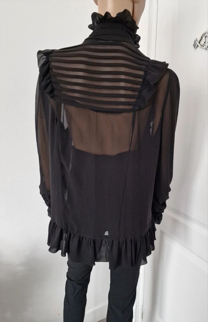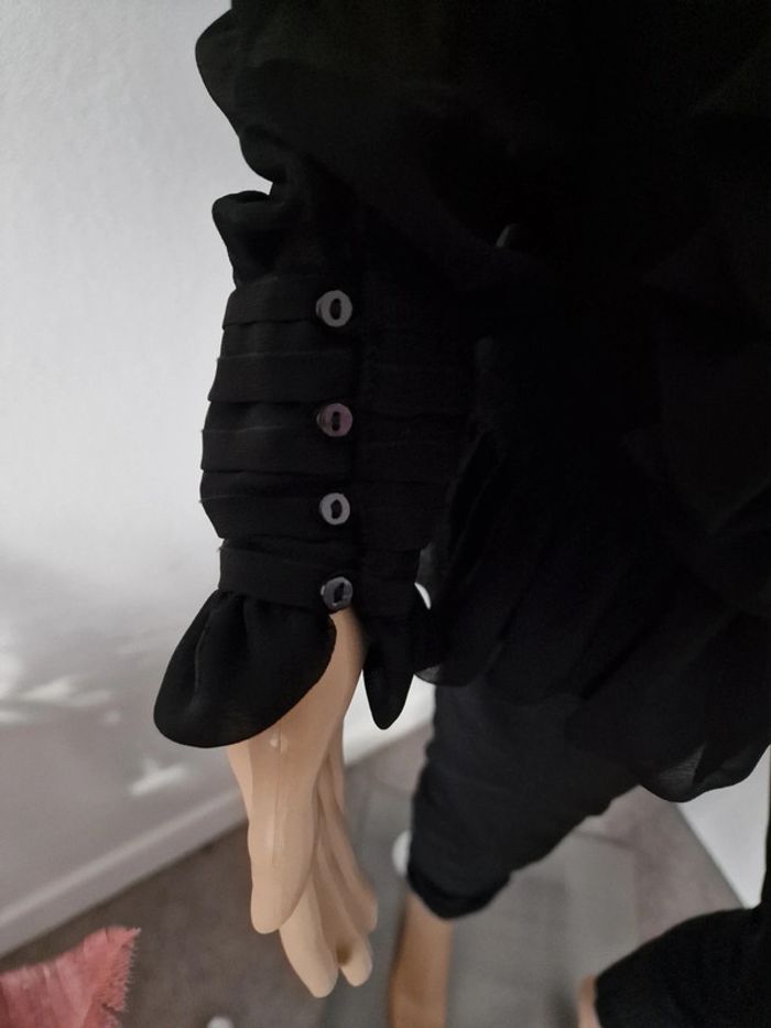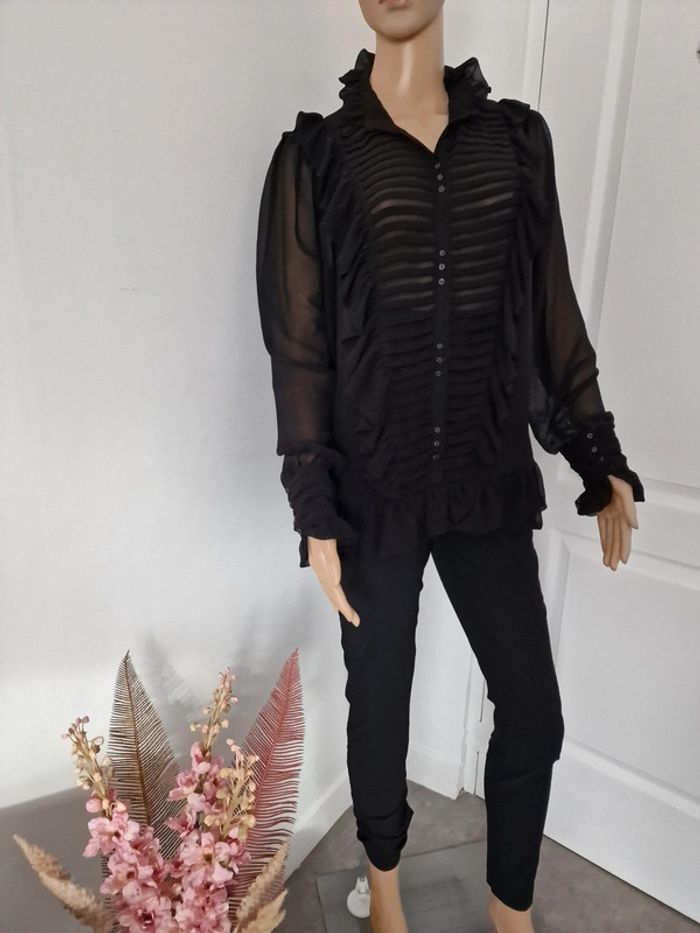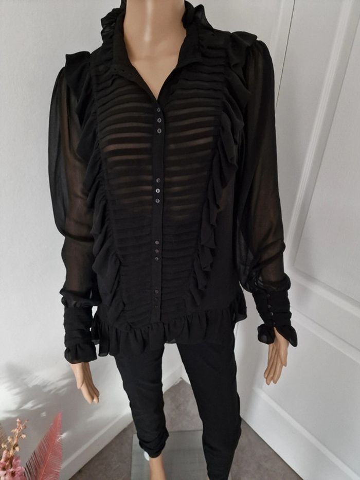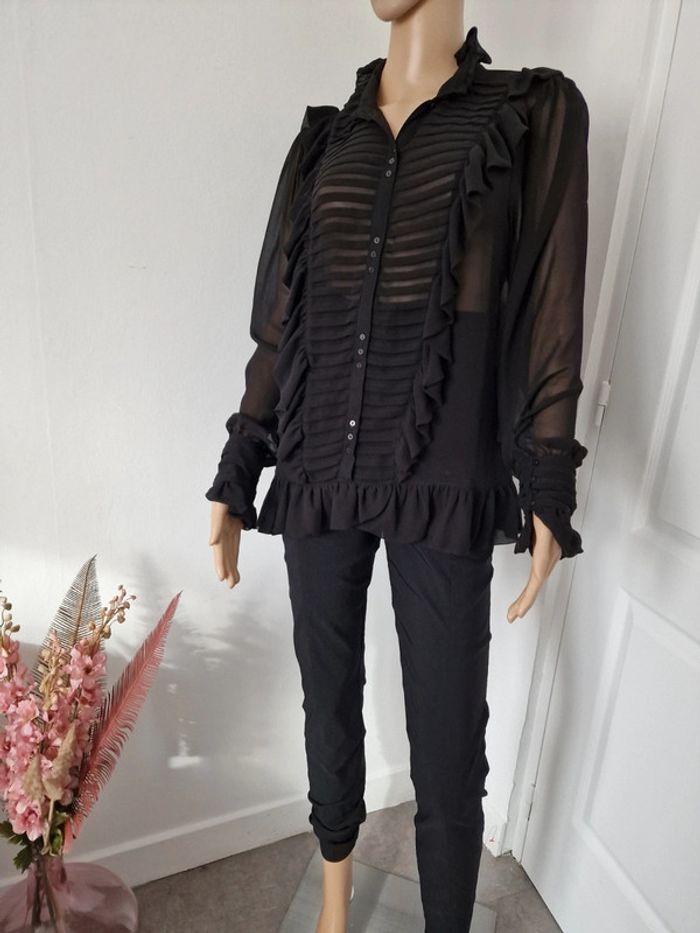 Chemisier avec froufrous noir transparent 42 ZARA Fermeture boutons
