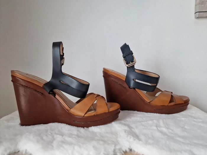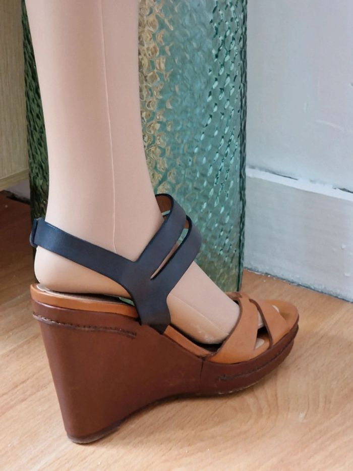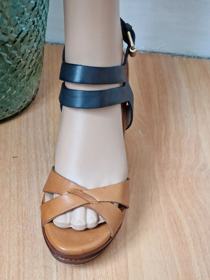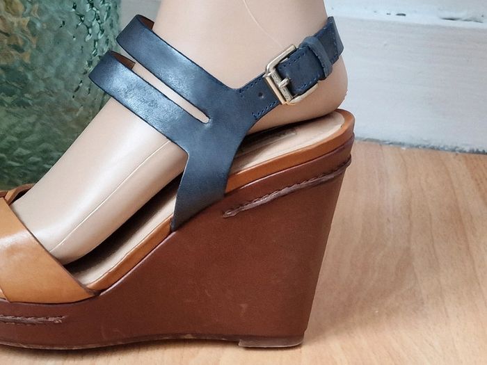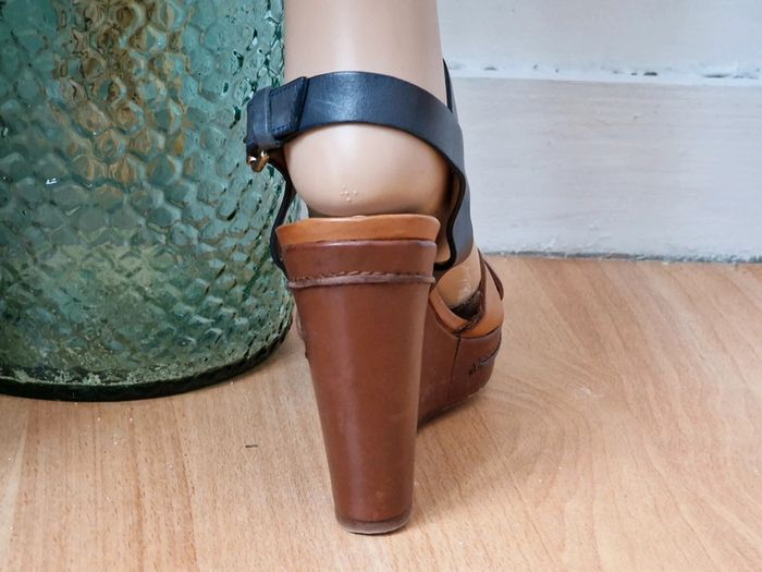 Sandale compensé femme camel et marine MASSIMO DUTTI Talon 12cm