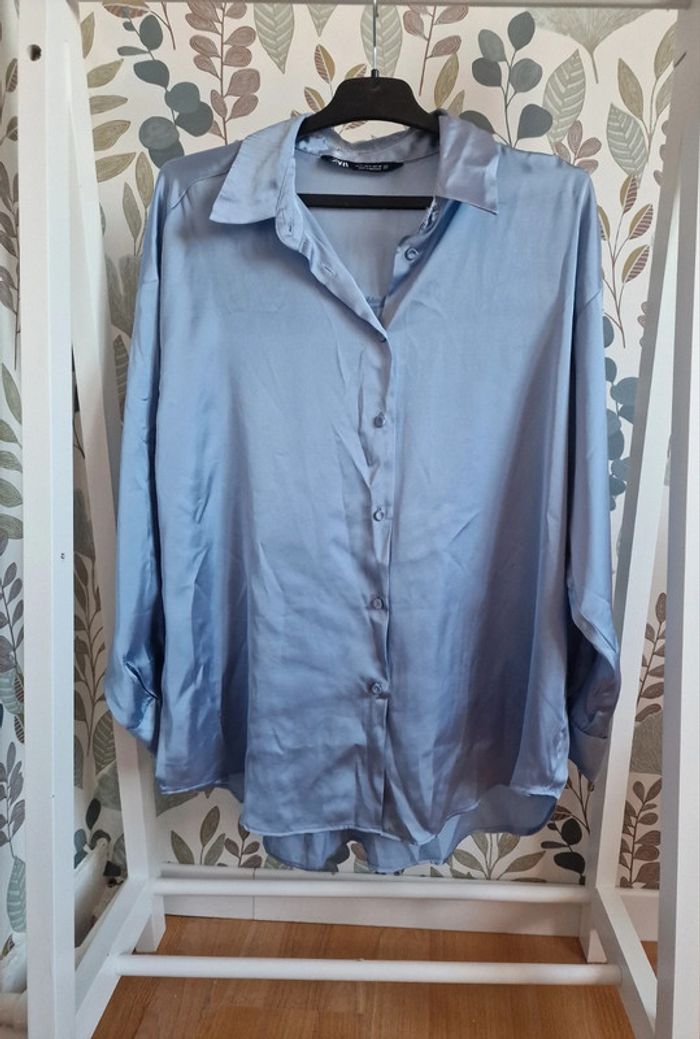 Chemisier satiné bleu clair 36 ZARA