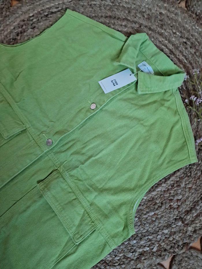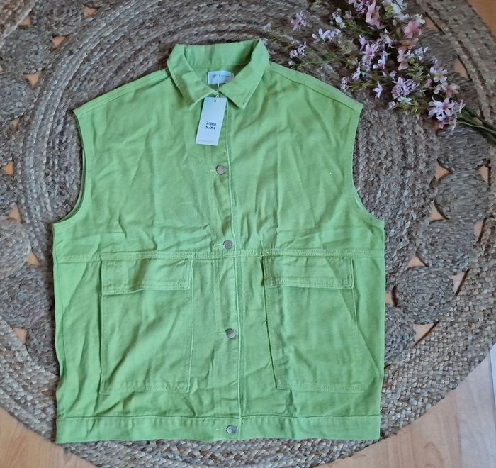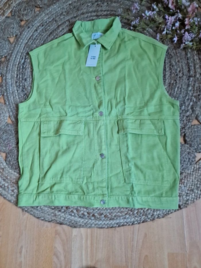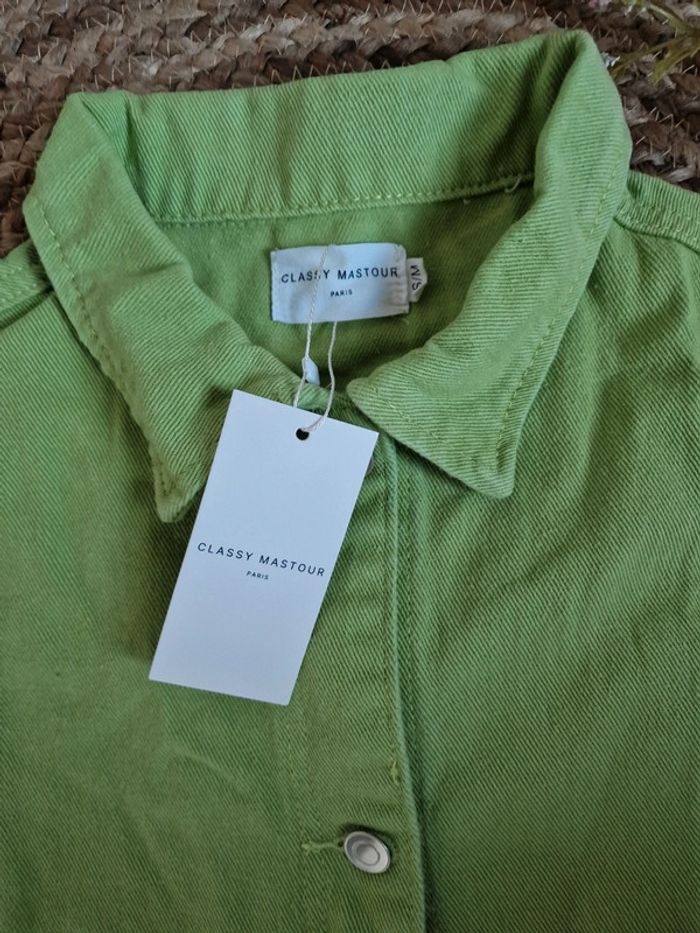 Veste en Jean sans manches CLASSY MASTOUR Vert pomme Coupe oversize s/m 36 / 38