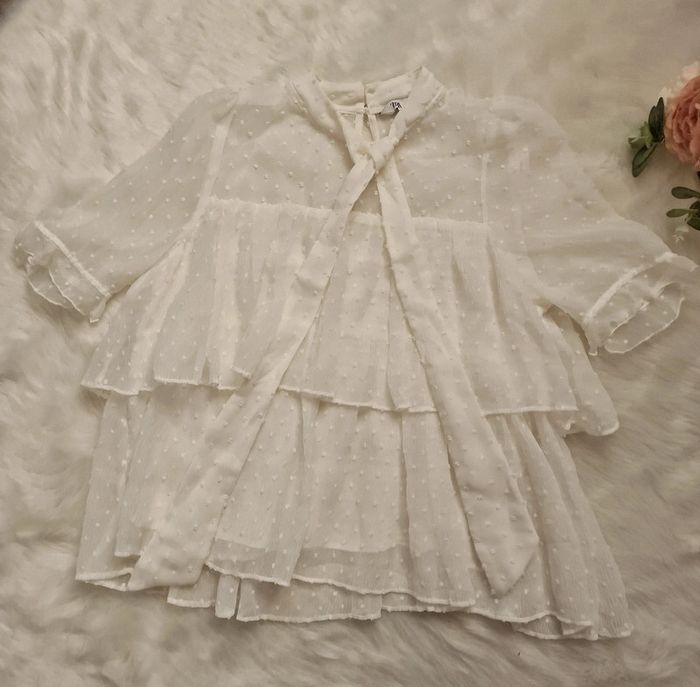 Jolie petite blouse femme 38 ZARA Avec petite cravatte à nouée sur le devant Très romantique
