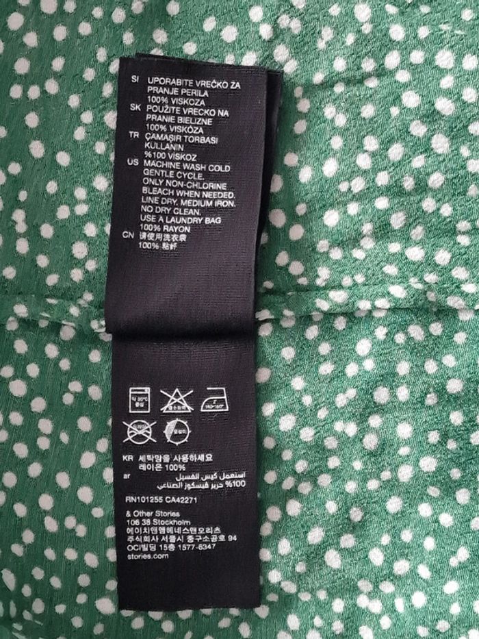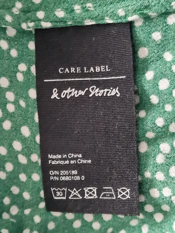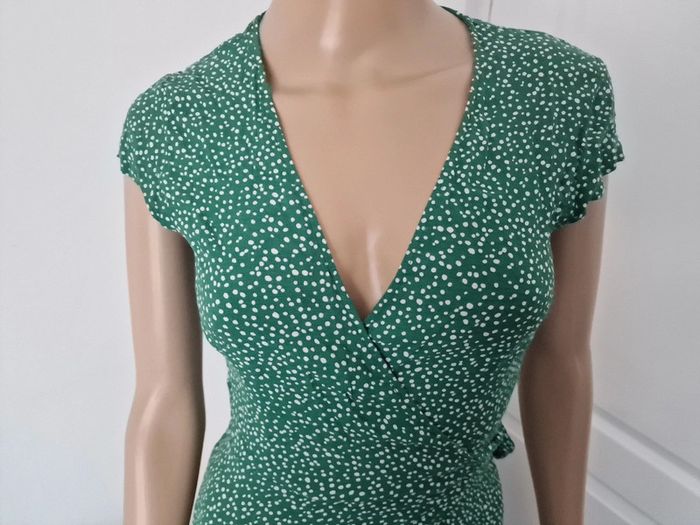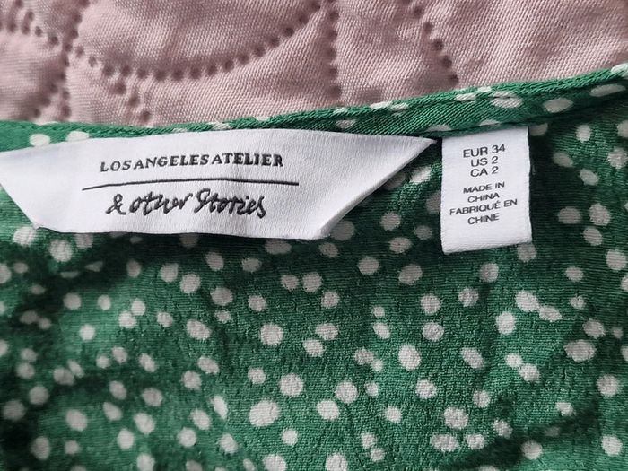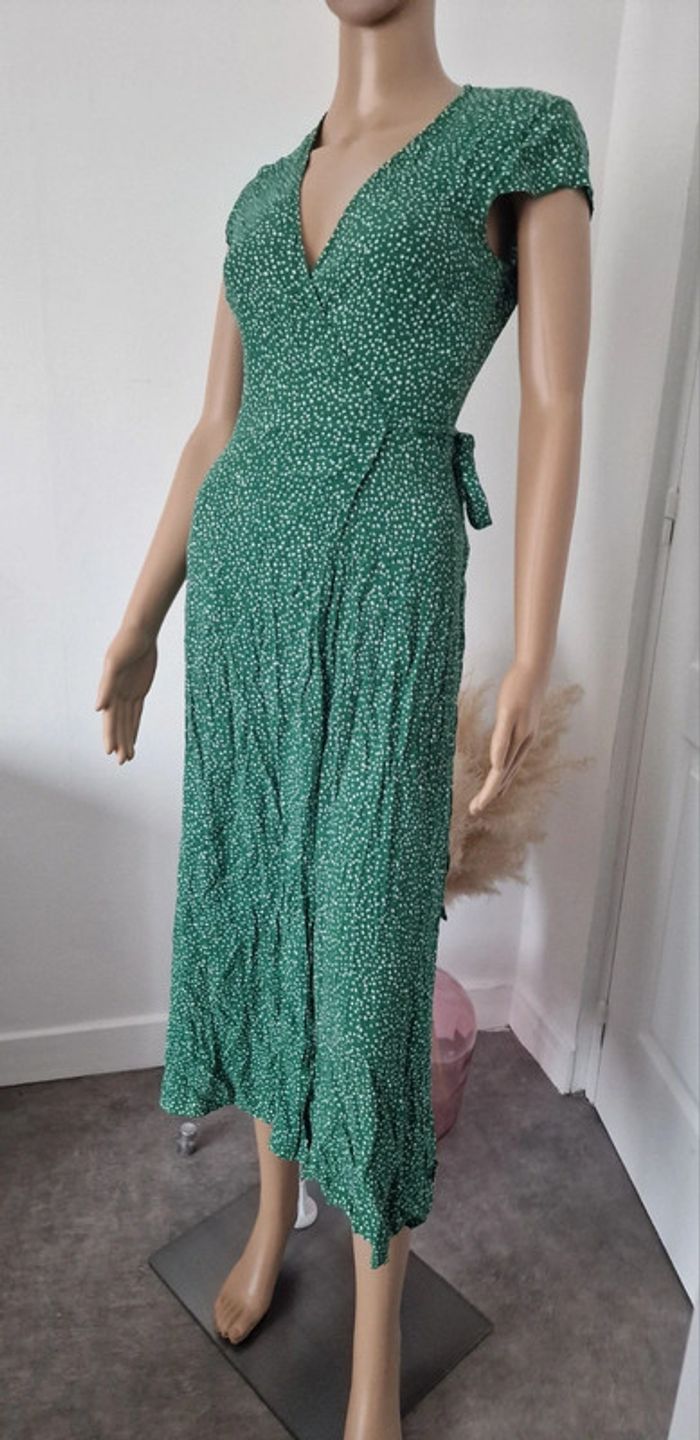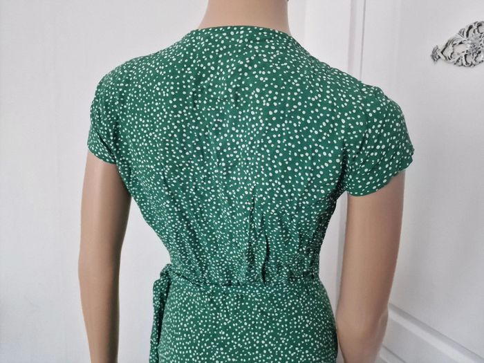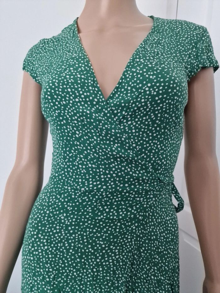 Jolie longue robe femme 34 Style porte feuille, cœur croisé Verte à pois blanc Marque : LOS ANGELES ATELIER ET OTHER STORIES