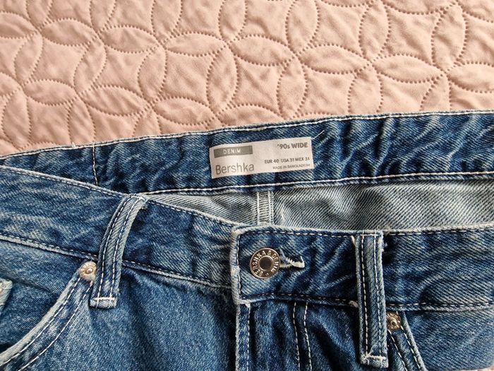 Jean femme L BERSHKA Mesure: bas de pantalon 22 cm, cuisses 33 cm, taille 44 cm , hanches 58 cm