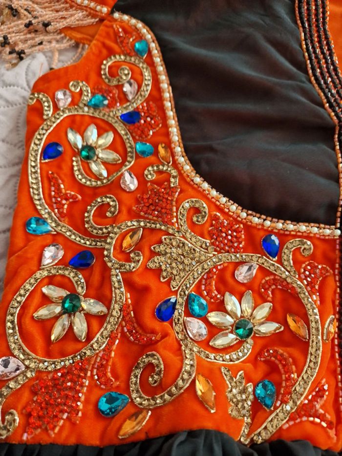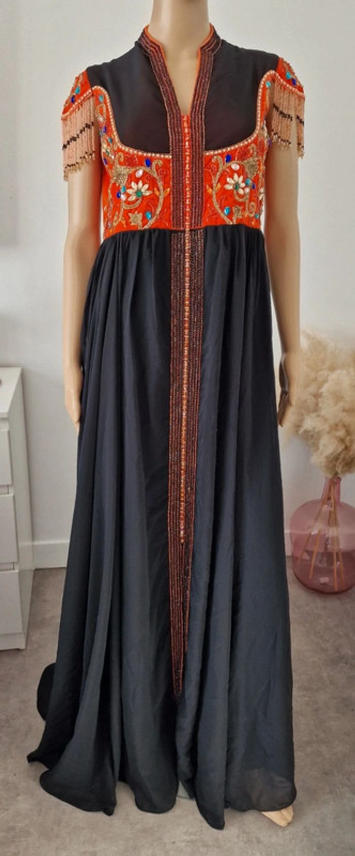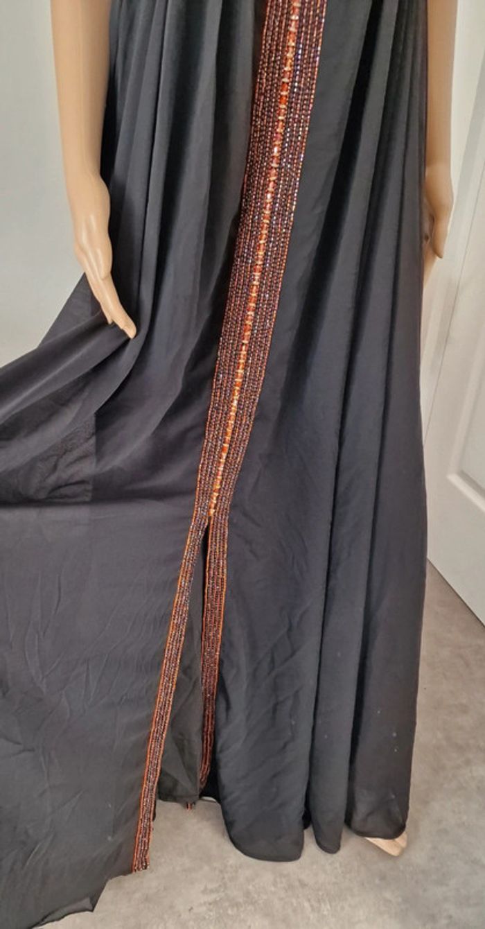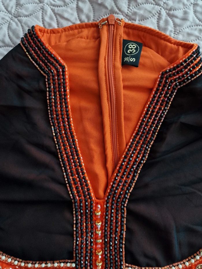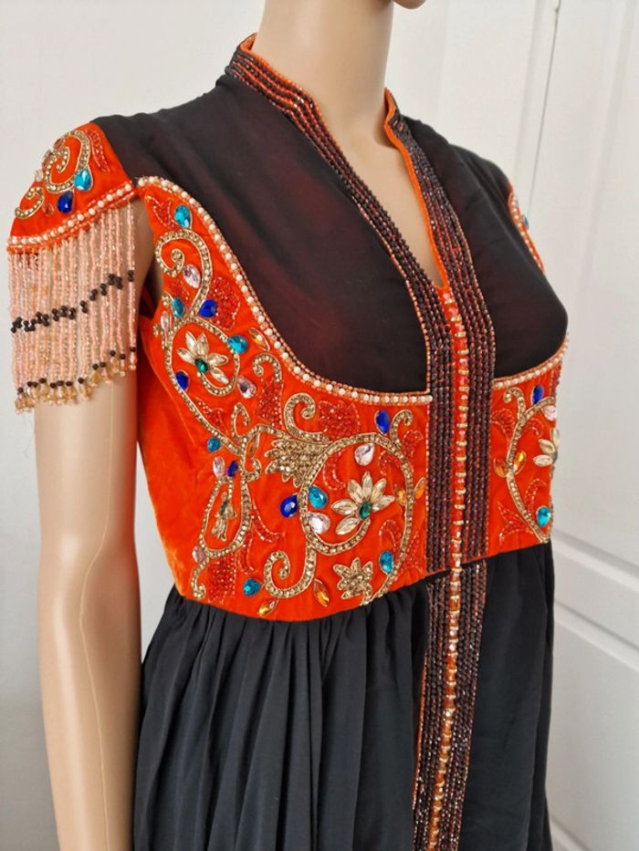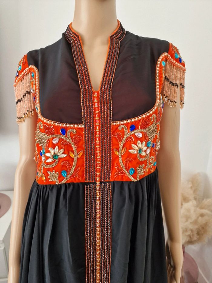 Longue robe femme s 36 NOIR ET ORANGE, AVEC PERLES , STRASS .. doublure en dessous noir #caftan #abaya ...