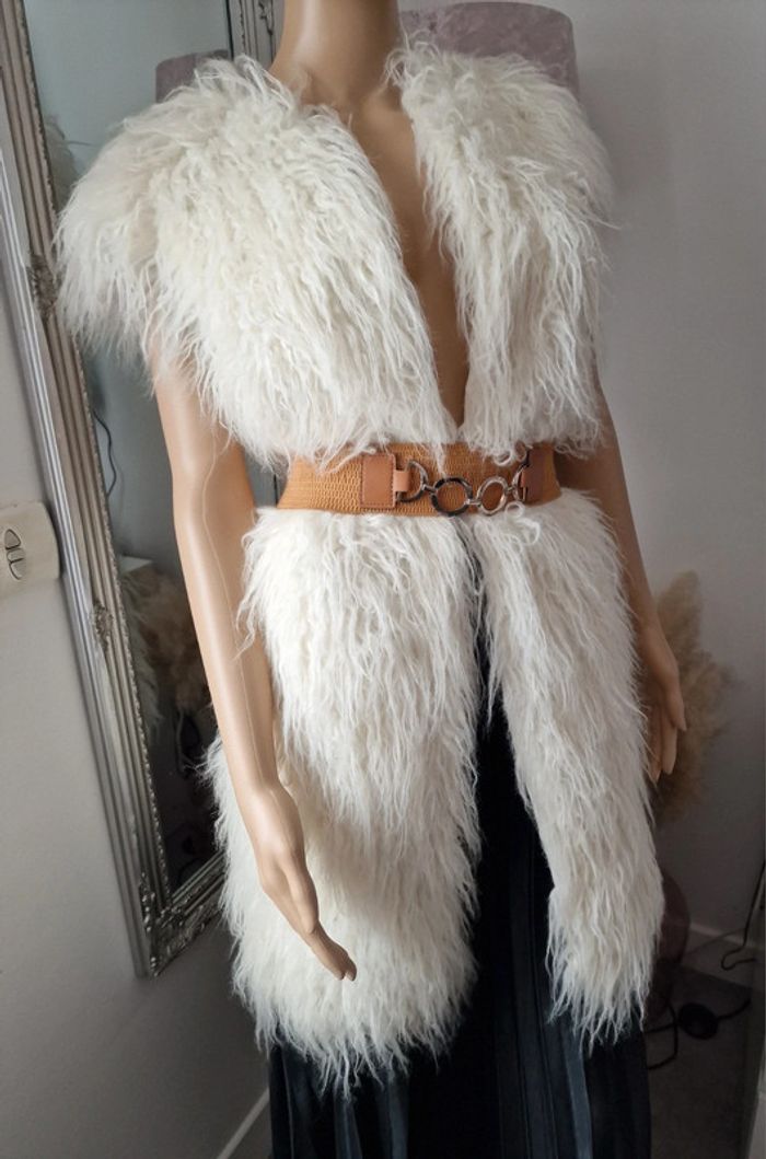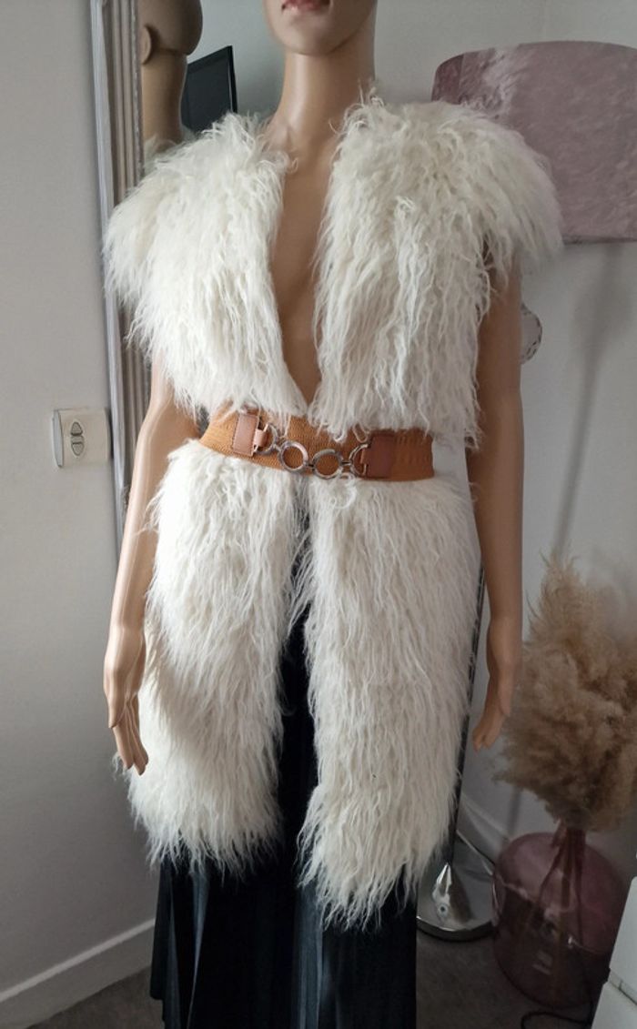 Veste en poils femme 36 ZARA BASIC A poils écru, pas de fermeture, se porte ouverte, ou avec une ceinture "non fournie"