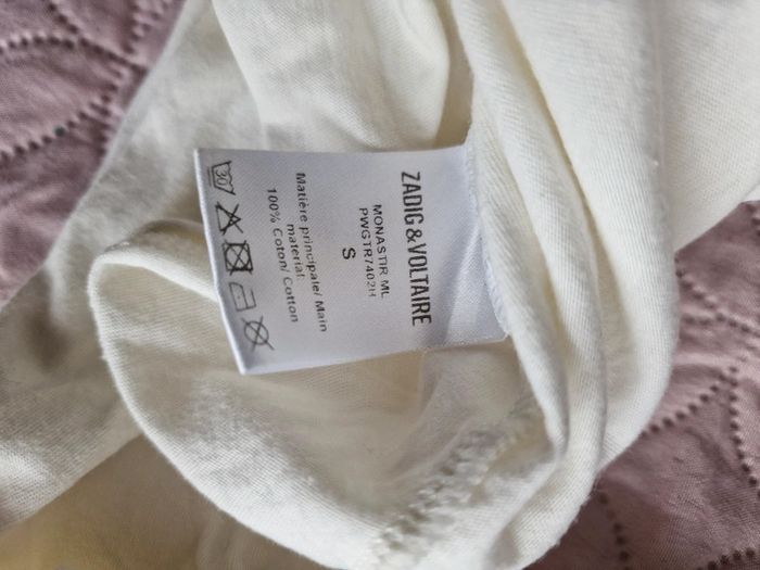 Tee-shirt longue manches femme 36 écru ZADIG ET VOLTAIRE Très bon état, broderie Z V sur le manche Col Tunisien