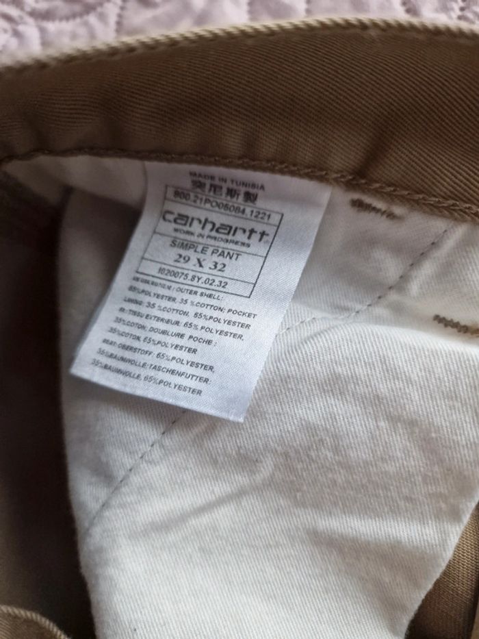 Pantalon homme taille 29x32 CARHARTT comme neuf Mesure : taille 40cm, hanches 52cm, longueur prise sur le côté 105cm, largeur bas de pantalon 21cm