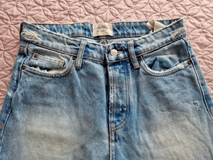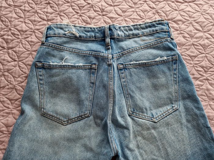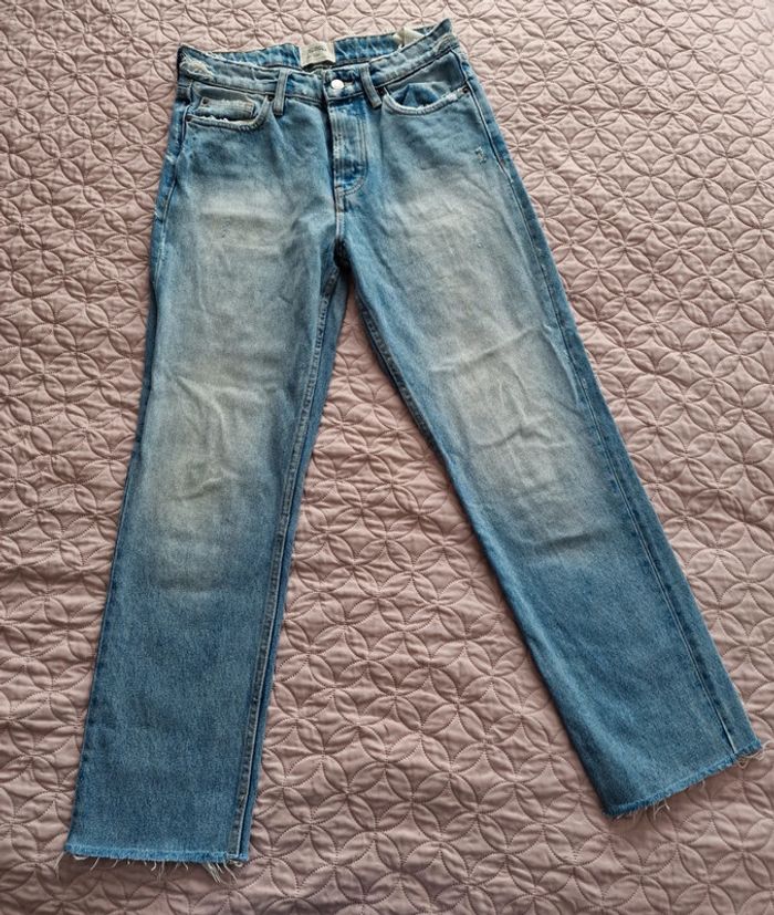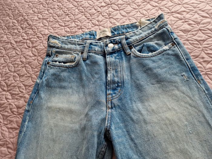 Jean Zara style usée Femme 36 Mesure: taille 36cm, hanches 47cm, longueur 93cm (prise sur le côté), largeur bas de pantalon 18cm.