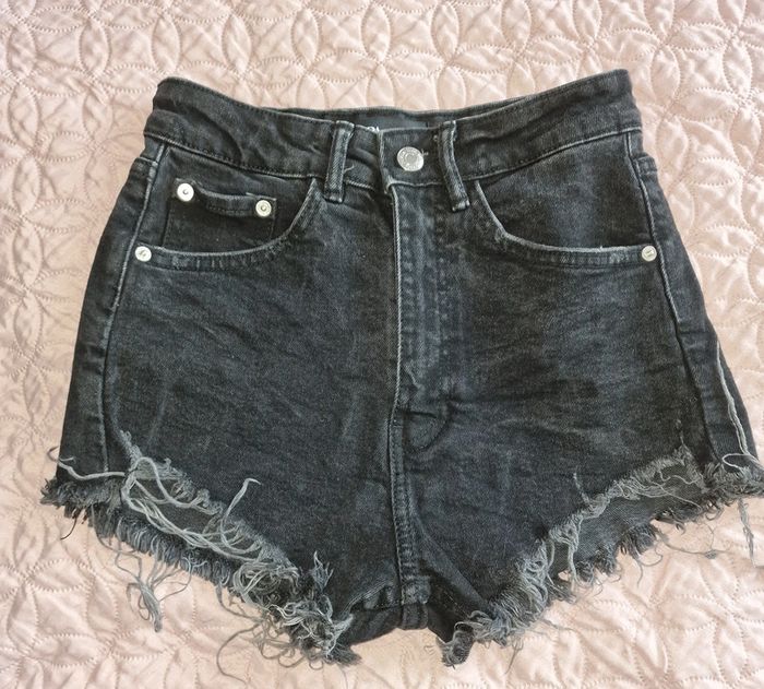 Short Zara Femme 34 Couleur noir délavé et éfiloché, d'origine