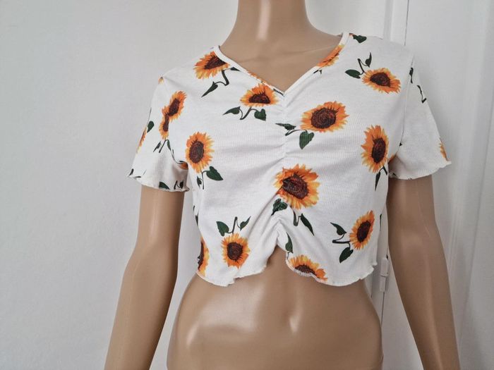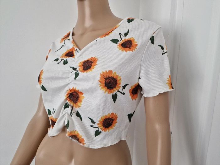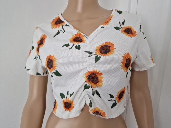Haut croc top femme 38 SHEIN écru avec tournesol 🌻