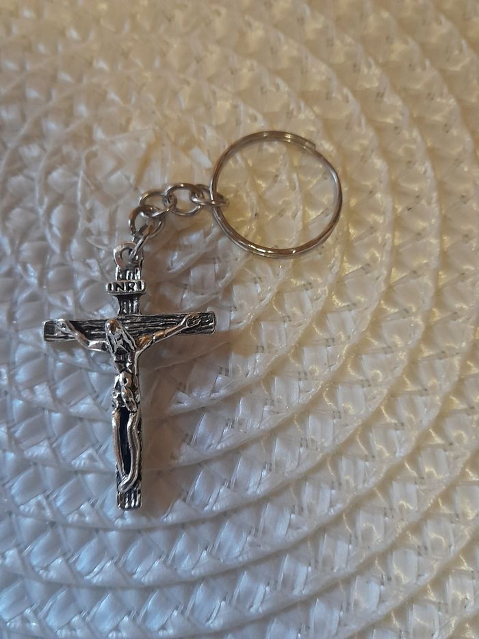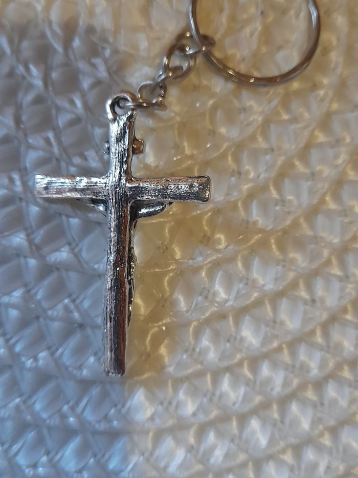 Porte clé acier crucifix croix chrétienne #kawai #protection #dieu #mixte
