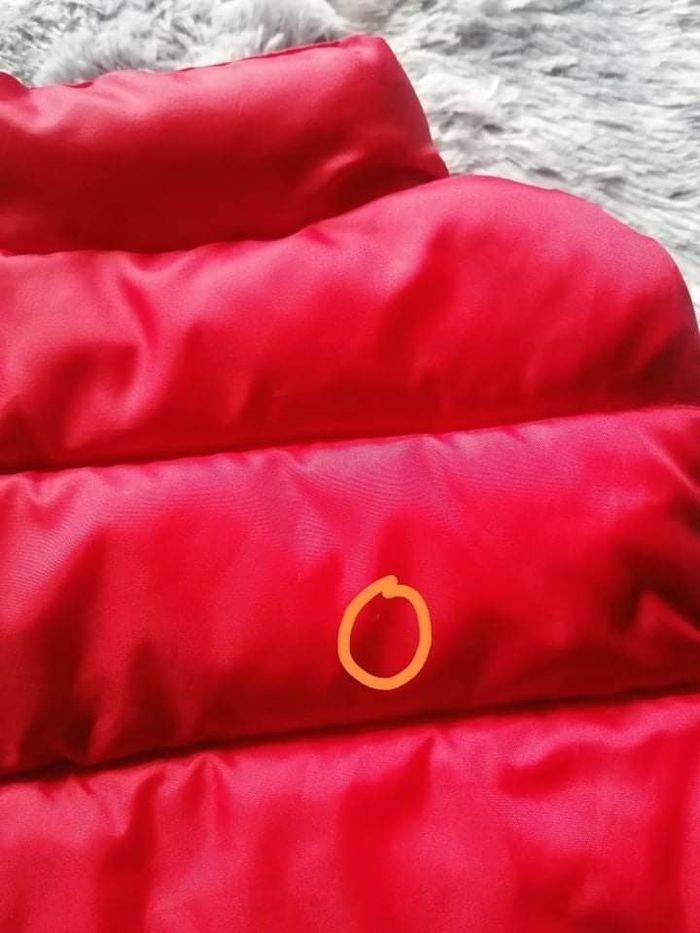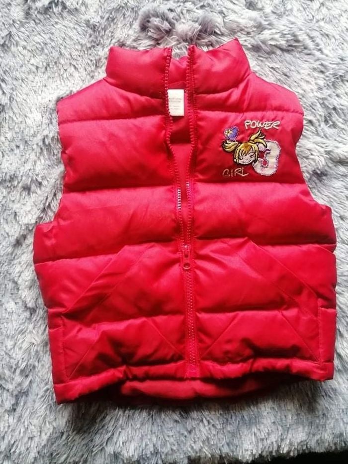 Doudoune rouge sans manches petit accroc à l'arrière (voir dernière photo) taille 2A