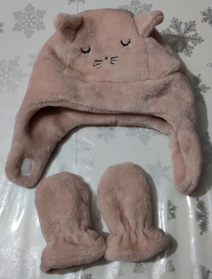 Bonnet + moufles rose - photo numéro 1