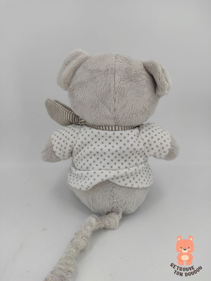 🐻 Doudou Peluche Musicale Ours Gris avec T-shirt Blanc brodé d'un oiseau et d'un Nuage, marque Mots d'Enfants 📏 Dimension : 26 cm environ ✨ Occasion, très bon état, manque l'étiquette de la marque 💦 Lavé avec une lessive Hypoallergénique 🧼 👀 Vous achetez le doudou que vous voyez sur les photos.