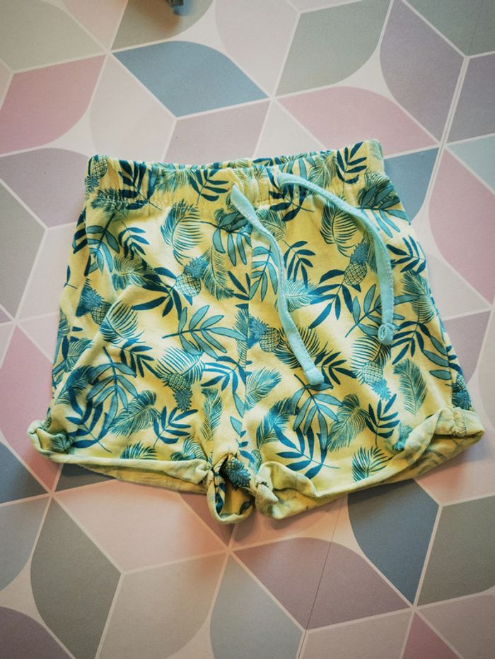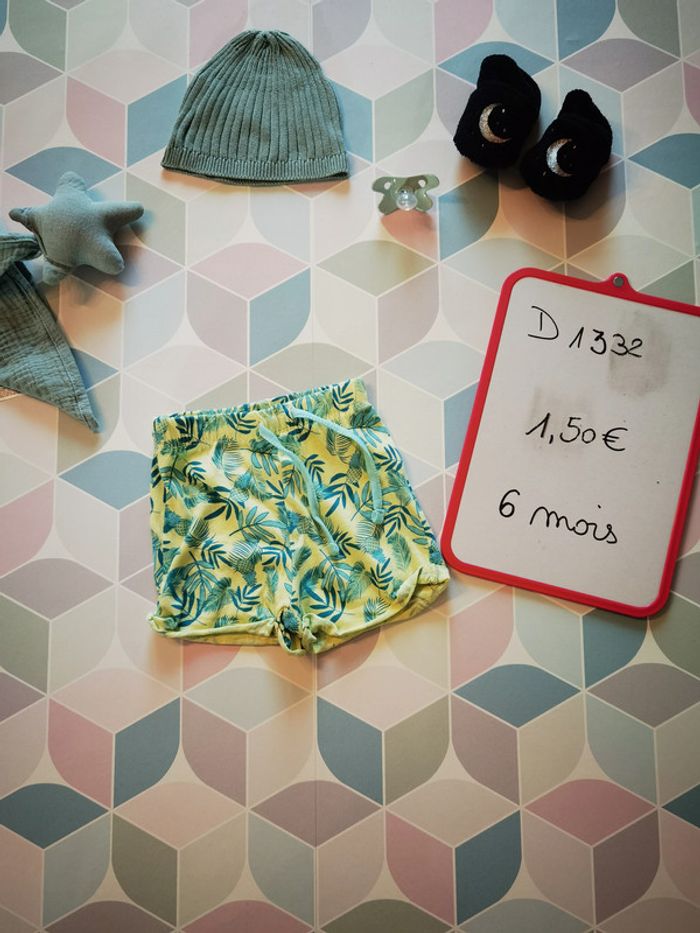 short jaune motif feuilles pour garçon de 6 mois