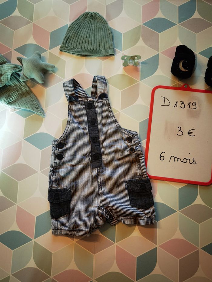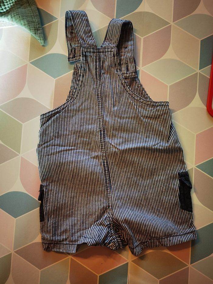 salopette short blanche et bleue rayée pour garçon de 6 mois