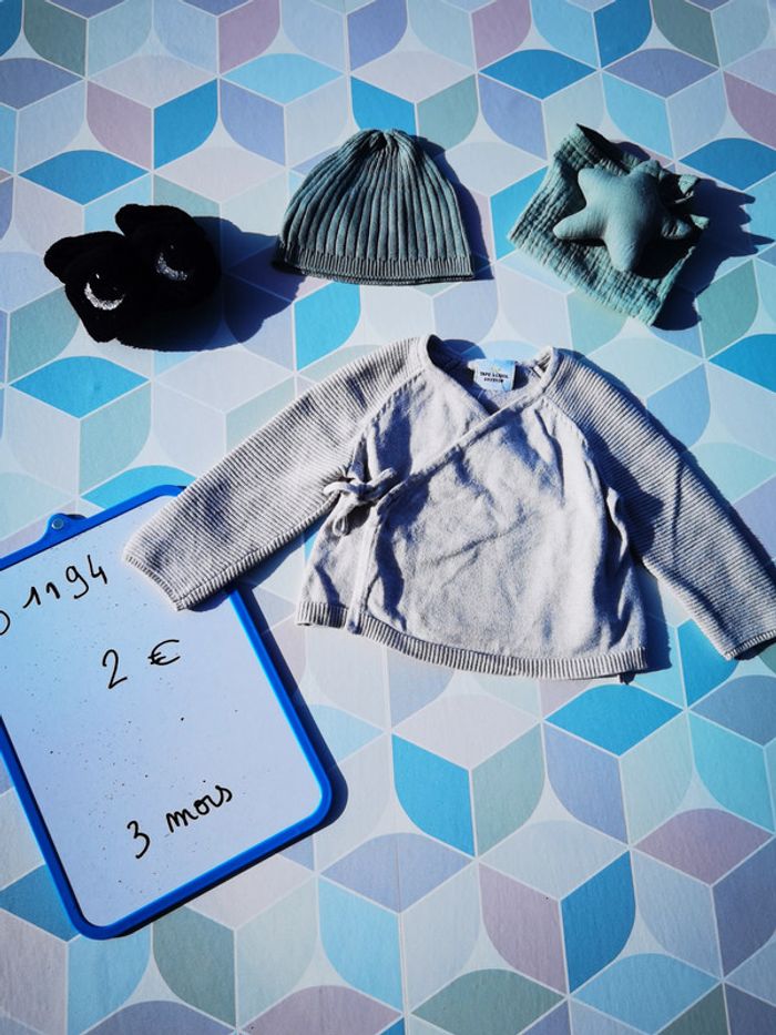 gilet/brassière garçon 3 mois. couleur gris #labourseo80_garçon3mois
