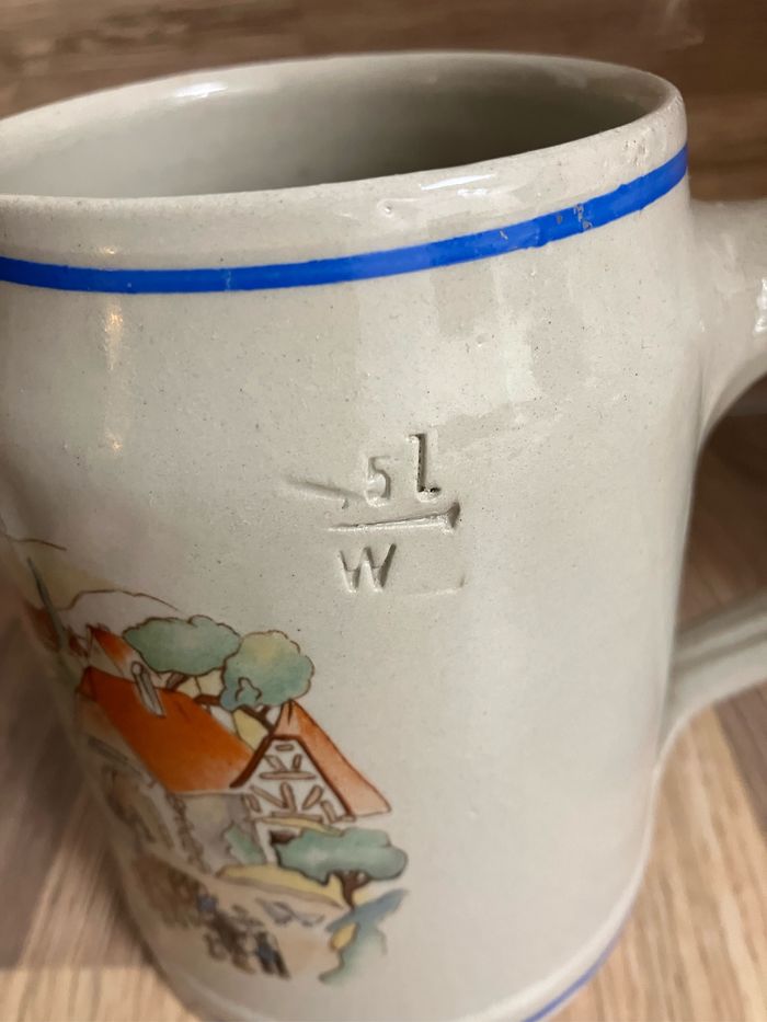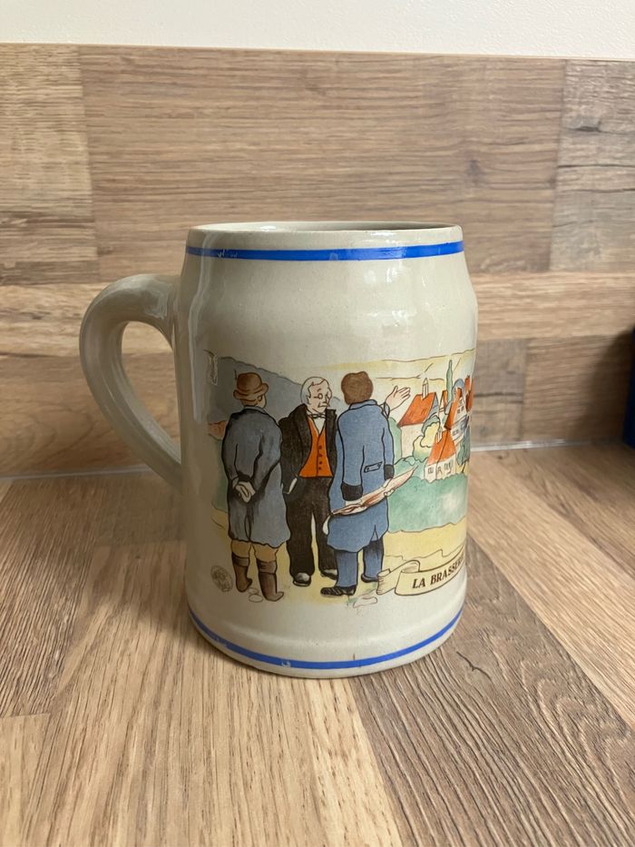 Cette chope a une contenance de 50 cl. Elle n’a jamais servi. Joli décor campagnard avec inscription « La brasserie du Village » Dimensions : - hauteur : 13 cm - diamètre base : 9,5 cm
