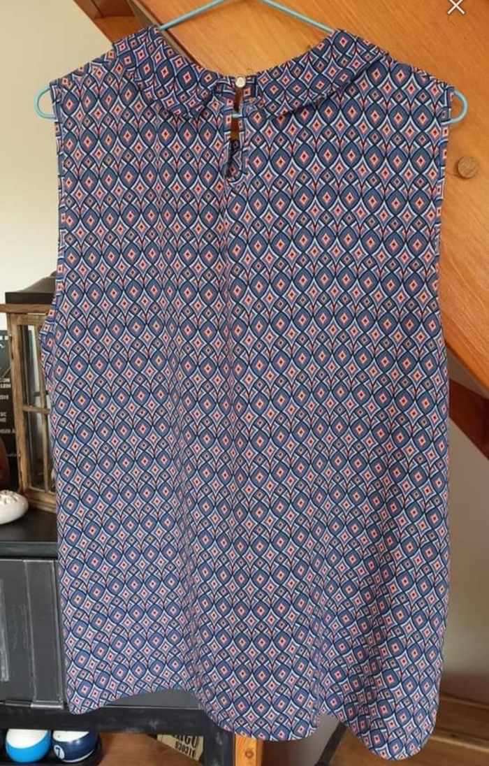 FEMME 44 / XXL N°816 Blouse imprimée Multicolore Jolie col Bouton au dos Bleu / orange Taille 44/ xxl 3€ #kelly_femmeT44