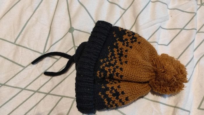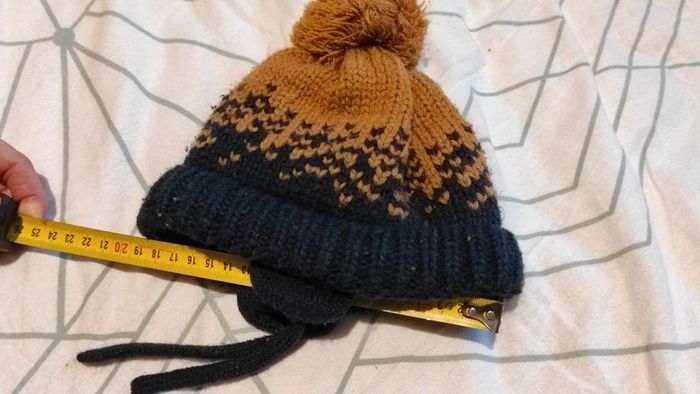 Bonnet laine intérieur polaire 40cm de tour tête posé . C'est extensible pour bien tenir a la tête