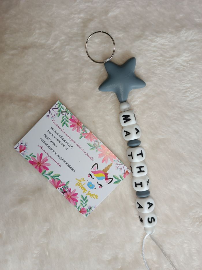 Porte clés 1 branche Étoile de mer 100% personnalisable en silicone alimentaire et/ou bois naturel. Large choix de perles, le style, les couleurs, nous personnalisons ensemble main dans la main pour créer votre accessoire idéal. Contactez-moi par message pour personnaliser ou tout renseignement.