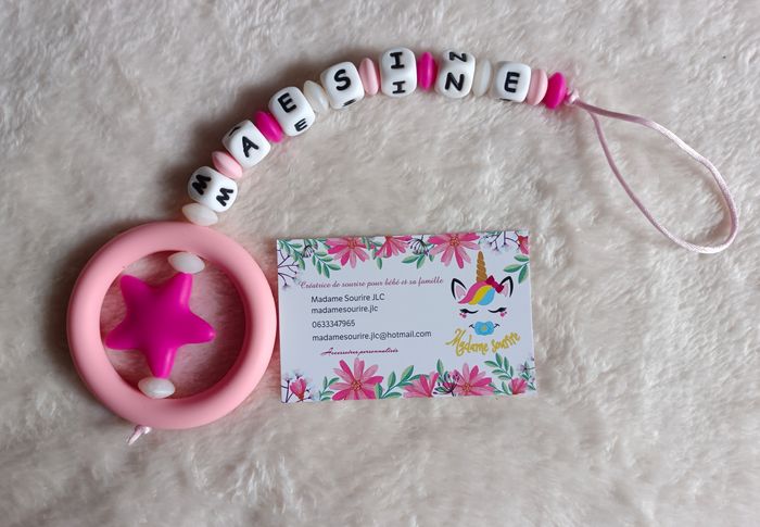 Attache tétine dentition Étoile de mer 100% personnalisable en silicone alimentaire et/ou bois naturel.