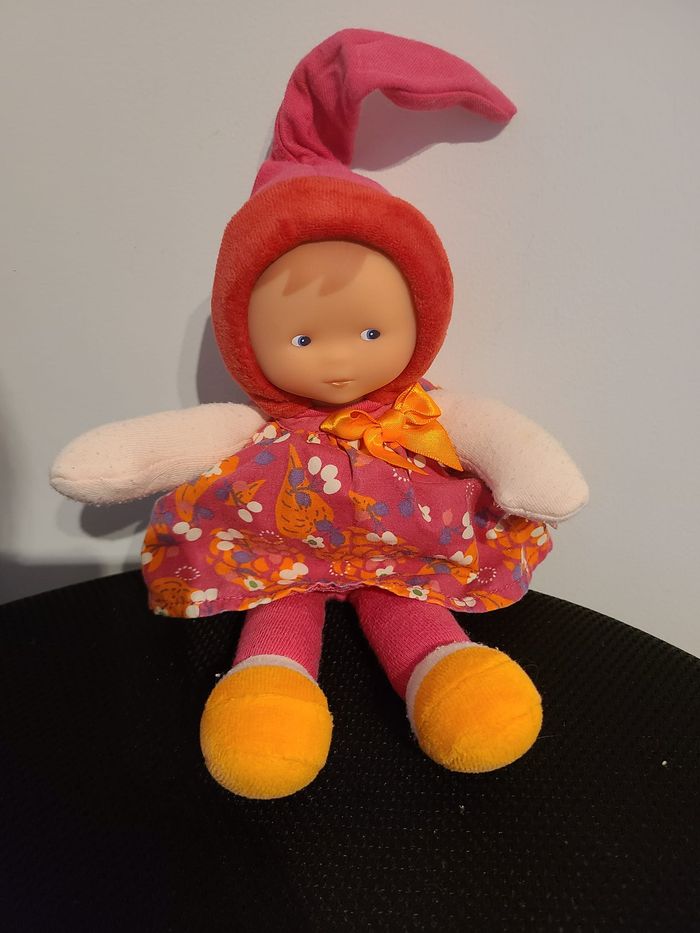 DOUDOU POUPÉE LUTIN ROSE ROUGE ORANGE FLEURS COROLLE 112