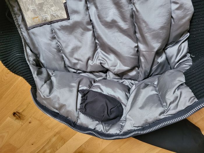 Il apporte une belle carrure avec du rembourrage à l'intérieur de plume 100%. Il a également quelque que petites poches à l'intérieur pratique !