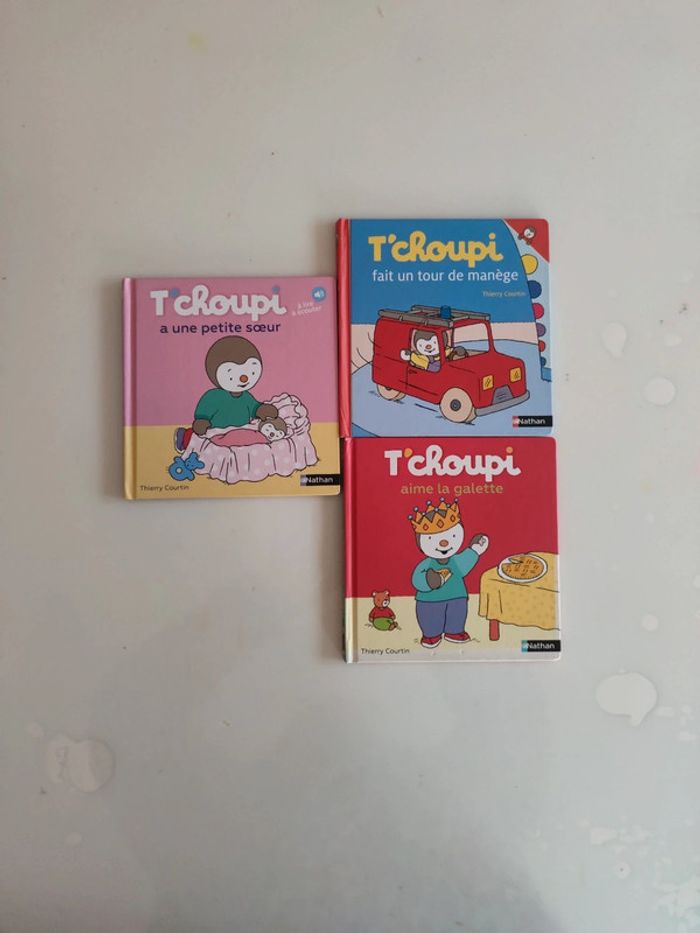 - T'choupi a une petite soeur - T'choupi fait un tour de manège - T'choupi aime la galette Quelques défauts, voir les photos Peut se vendre séparément Prix neuf 6,30€ par livre