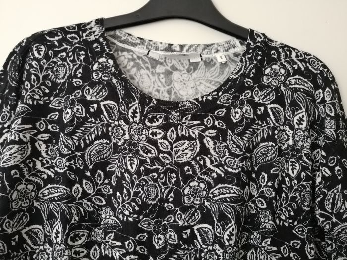 Pull fin noir et blanc motifs floraux Naf Naf taille S neuf - photo numéro 2
