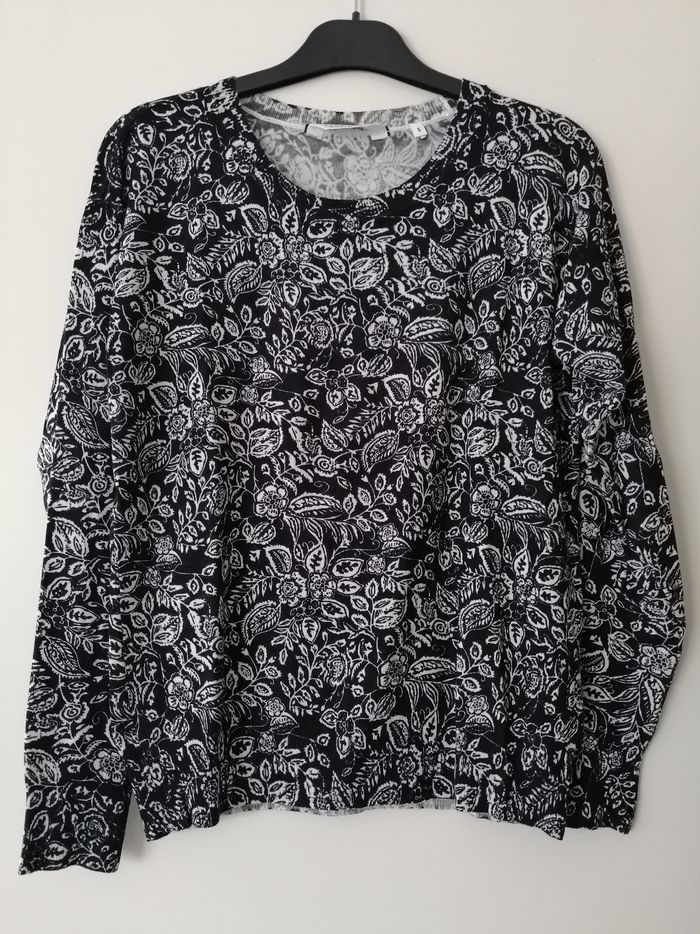 Neuf Pull fin noir et blanc motifs floraux Naf Naf Taille S
