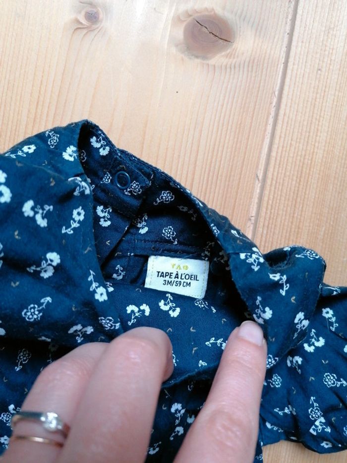 Jolie blouse légère bleue marine imprimé petites fleurs. Ouverture complète par pressions dans le dos. État neuf. Juste lavée. Tao 3mois #hanna9889fille3mois