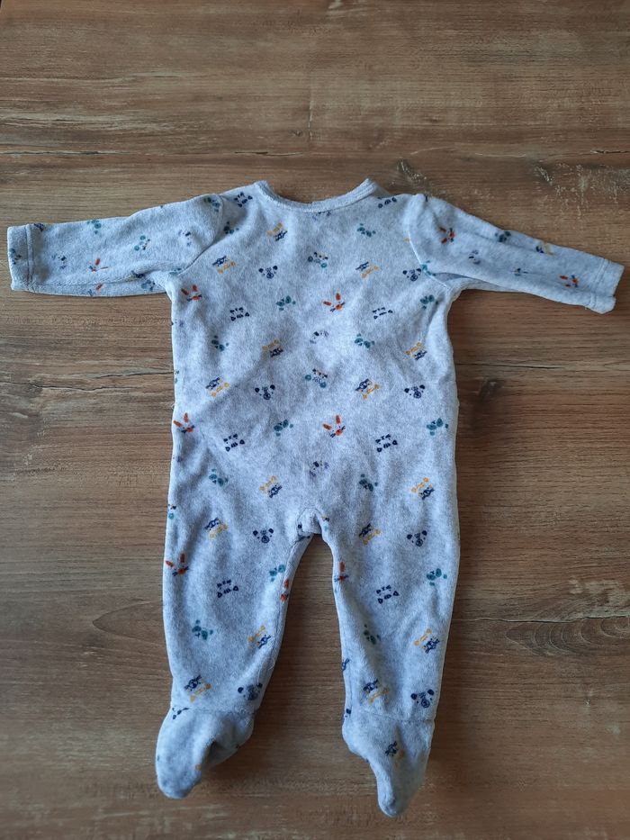 Pyjama Bout'chou en velours gris, motifs têtes d'animaux , taille 3 mois, mixte, très peu porté