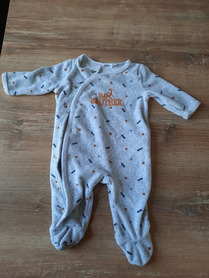 Pyjama gris en velours, à motifs marrons et bleus, ouverture devant, Gemo, taille 3 mois