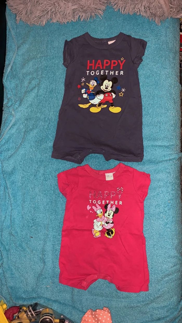 Lot 2 combishorts 3 mois et 6 mois disney